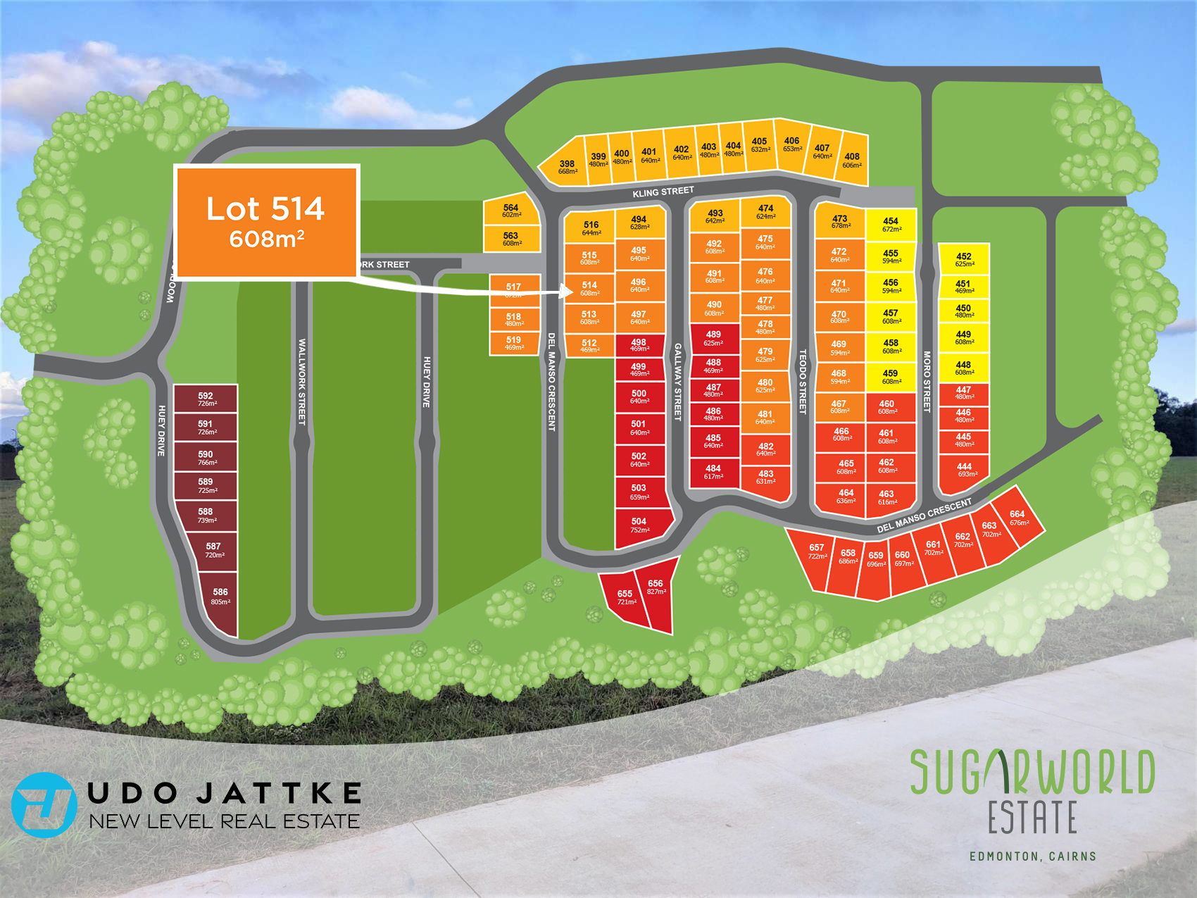Udo Jattke proudly presents Lot 514 Del Manso Crescent - a fully serviced, 608m2 lot located within Stage 3 of The Terrace at Sugar World Estate.
